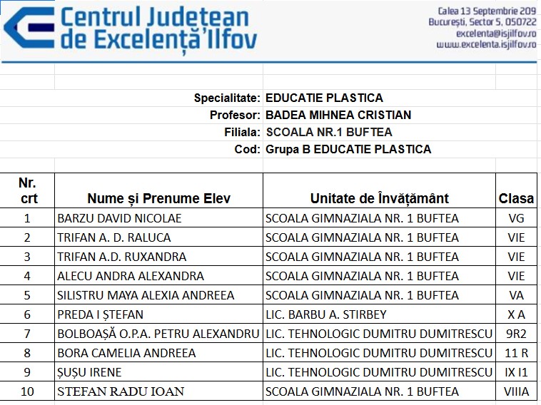 Grupa B Arte prof. Mihnea Cristian BADEA