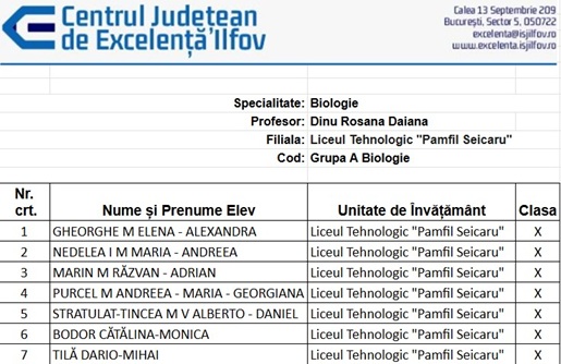 Grupa A BIOLOGIE prof. DINU ROSANA DAIANA