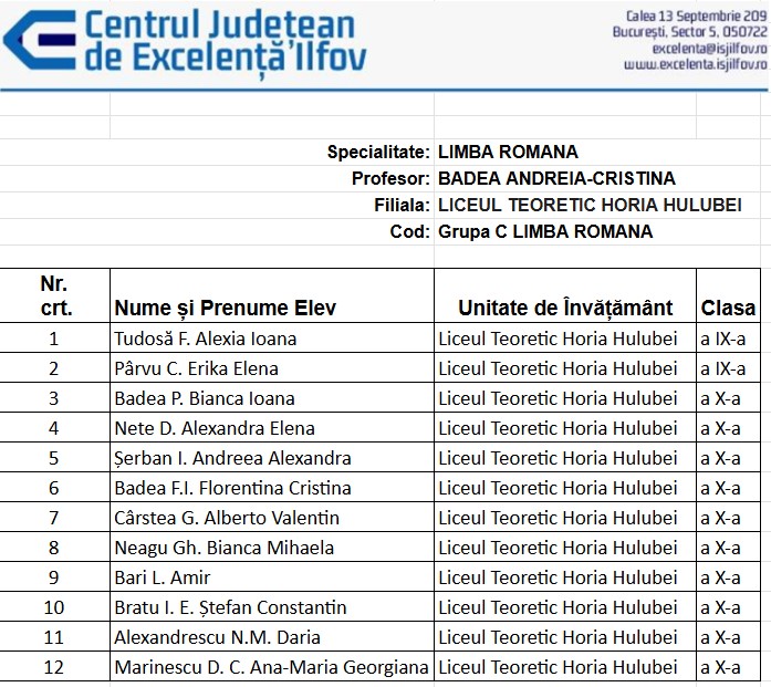 Grupa C Lb. Romana prof. Andreia-Cristina BADEA