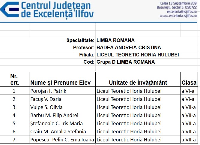 Grupa D 2 Lb. Romana prof. Andreia-Cristina BADEA