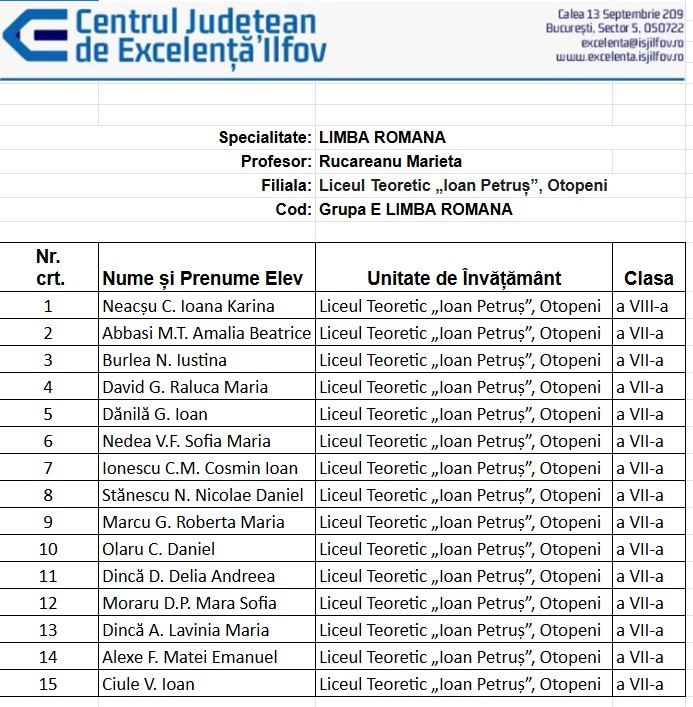 Grupa E Lb. Romana prof. Rucăreanu Alina Marieta