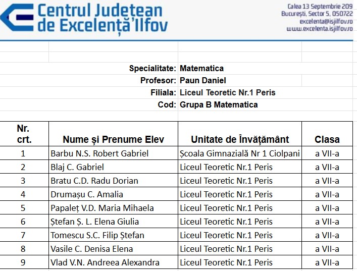 Grupa B Matematică prof. Daniel PĂUN
