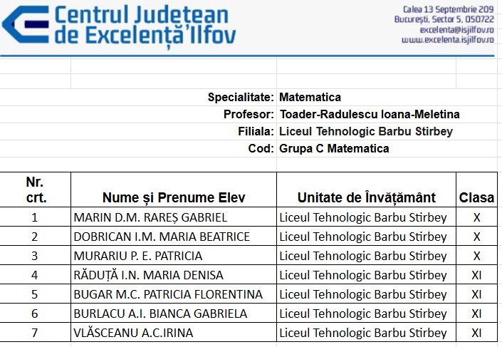 Grupa C Matematică prof. Ioana-Meletina TOADER-RADULESCU