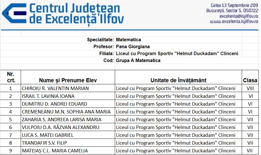 Grupa A Matematică prof. Georgiana PANA